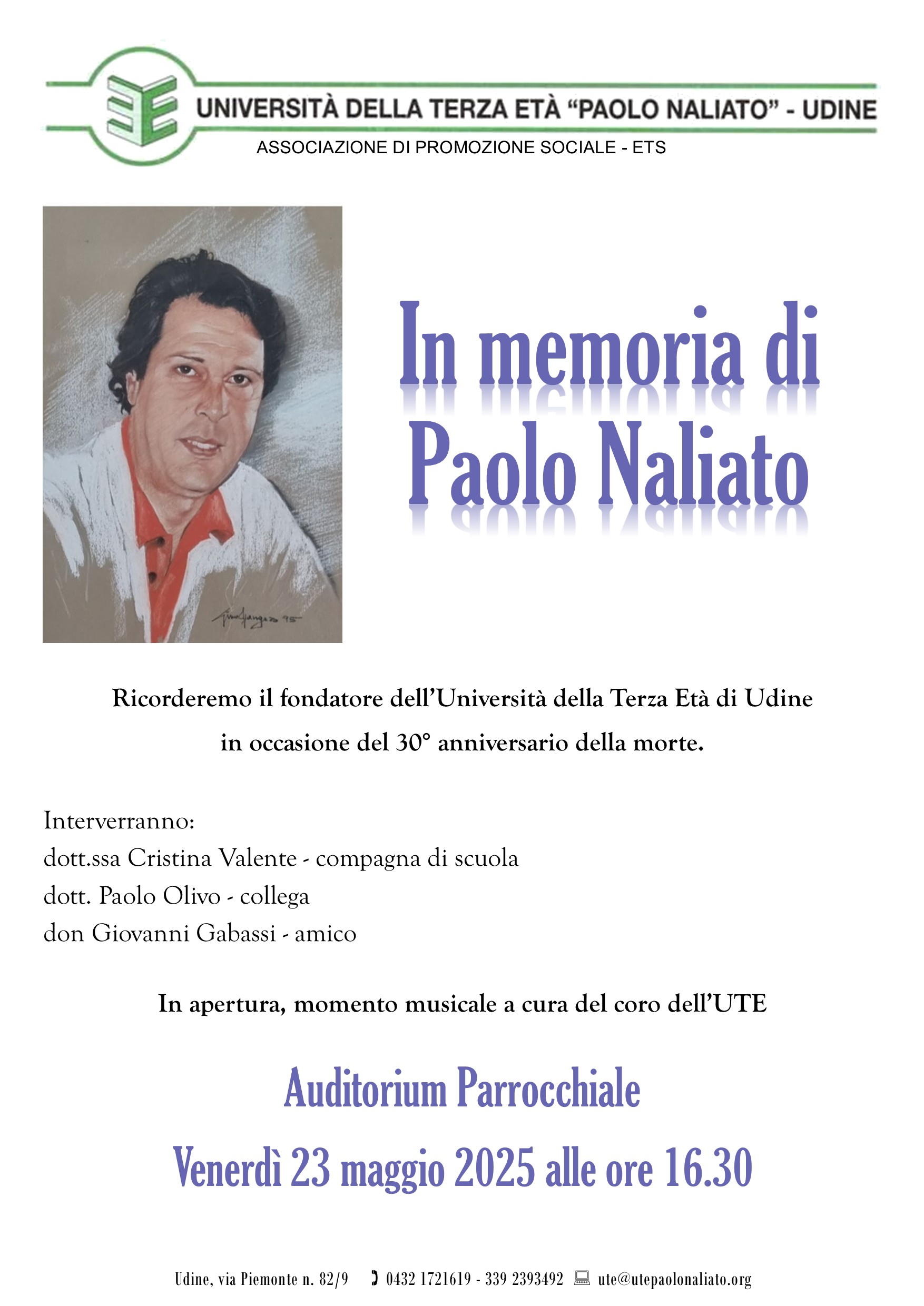 Giovedì 8 maggio 2025 alle ore 17.00, nell’Aula Magna “Bruno Londero” dell’UTE Naliato, si svolgerà la XIX edizione del Festival Internazionale di Poesia