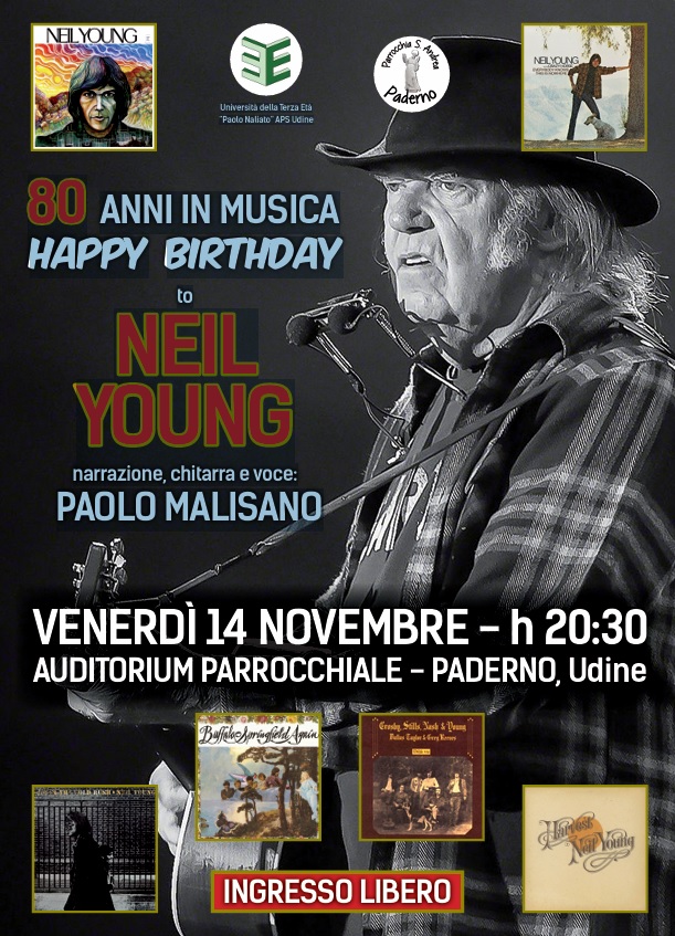 80 anni in musica. Concerto. Venerdì – Ore 20.30 Admin Calendario Novembre 12, 2025Novembre 12, 202520251114 Venerdì 14 alle ore 20:30 nell’auditorium parrocchiale vi invitiamo al concerto 80 ANNI IN MUSICA: HAPPY BIRTHDAY TO NAIL YOUNG. Narrazione, chitarra e voce a cura di Paolo Malisano, ingresso libero.
