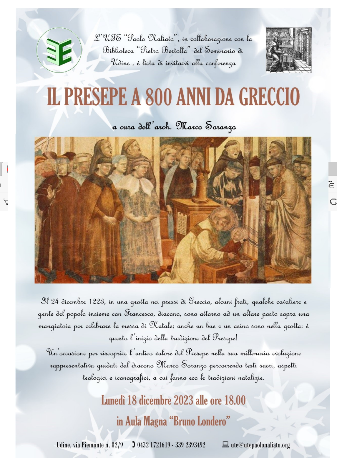 IL PRESEPE A 800 ANNI DA GRECCIO a cura dell’arch. Marco Soranzo Lunedì – Ore 18