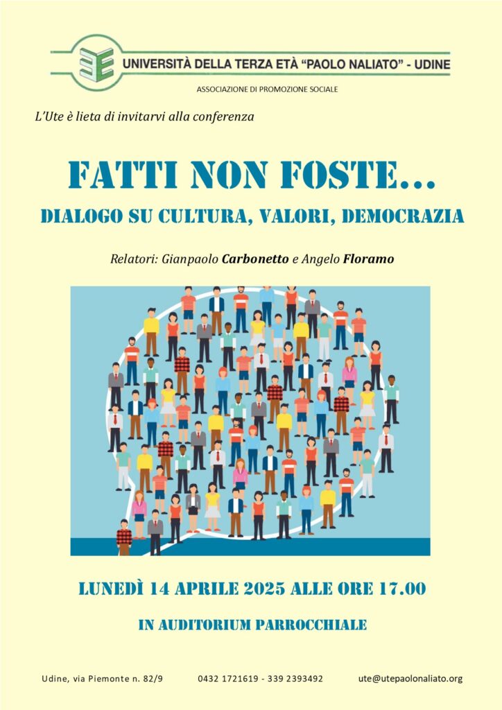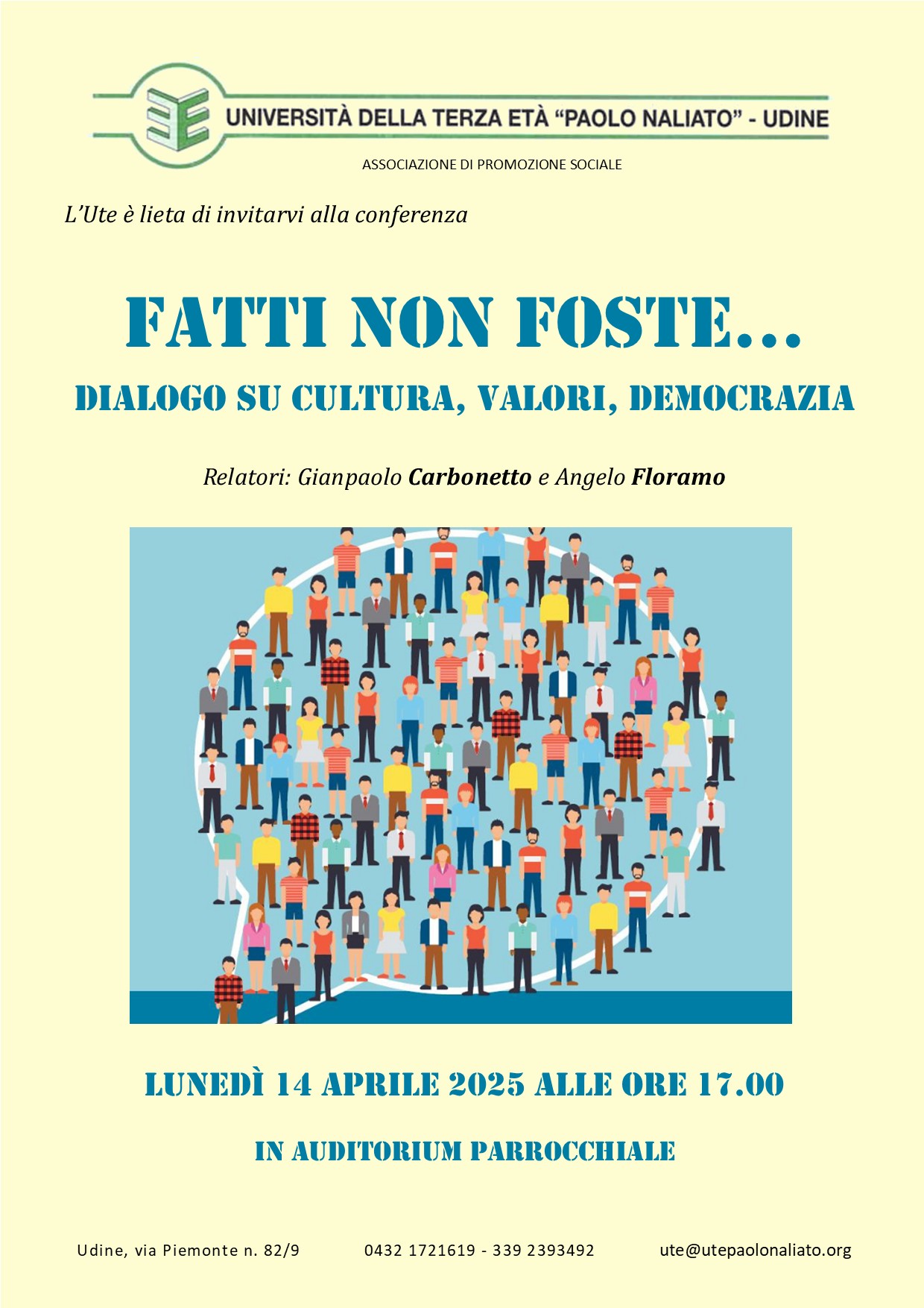 FATTI NON FOSTE… Relatori: Gianpaolo Carbonetto e Angelo Floramo. Lunedì – Ore 17