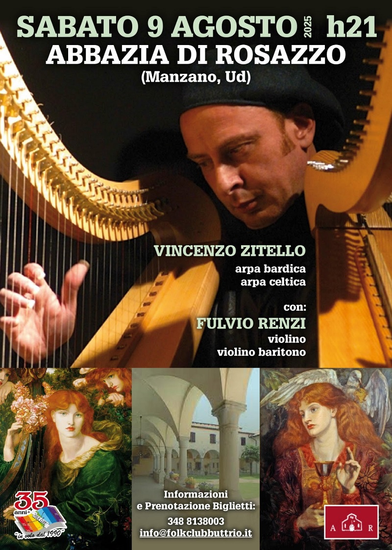 Il prof. Marco Miconi, che nell’anno accademico 2025/26 sarà docente del corso CE406) NON INVECCHIA, SI “AGGIORNA”: IL FOLK INTERNAZIONALE il giovedì dalle 15 alle 16, ci invita ad un concerto che si terrà nella splendida cornice dell’Abbazia di Rosazzo sabato 9 agosto alle ore 21: magie del luogo, magie del suono!