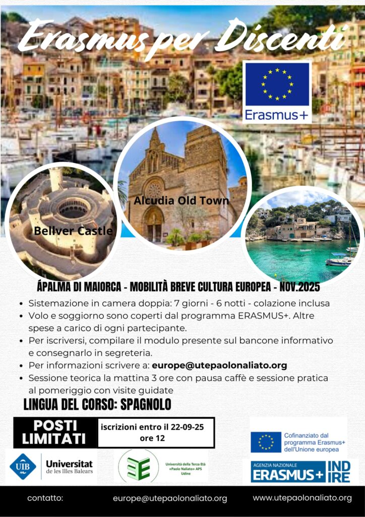 Viaggio alle Baleari Admin Calendario Settembre 12, 2025Ottobre 1, 202520250922 PALMA DI MAIORCA – MOBILITA BREVE CULTURA EUROPEA-NOV.2025 Per iscriversi, compilare il modulo al seguente link Modulo per presentare la domanda Modulo per per prese